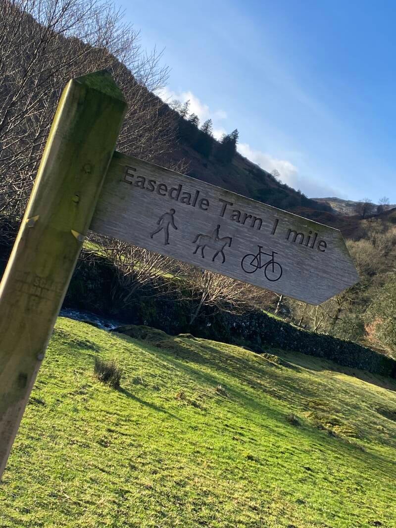 There’s different kinds of challenges. I’m used to long walks, hard walks. The Lyke Wake Walk in a Day, the Pennine Way, Coast to Coast, Yorkshire 3 Peaks. I’ve run tough cross country marathons like Beachy Head and Lenham Cross. You get the picture, I’m used to pushing it physically in the hills or on the trails. So the couple of miles from Grasmere up to Easdale Tarn and then back wasn’t going to be a problem. But this was a new challenge, because it was the first time we’d combined a hike with a mid-route dip, and it was a cold day, a very cold day. So it needed thinking about and to be honest I was a bit nervous. I had a lot of what ifs….can’t get warm what ifs…..forgot the coffee what ifs…… is a sandwich enough what ifs……is the Tarn easy to access what ifs…..